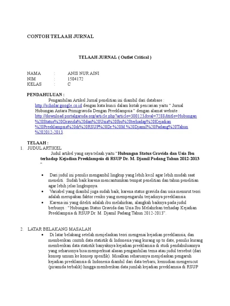 Contoh telaah jurnaltelaah jurnal ( outlet critical ) nama nim kelas: